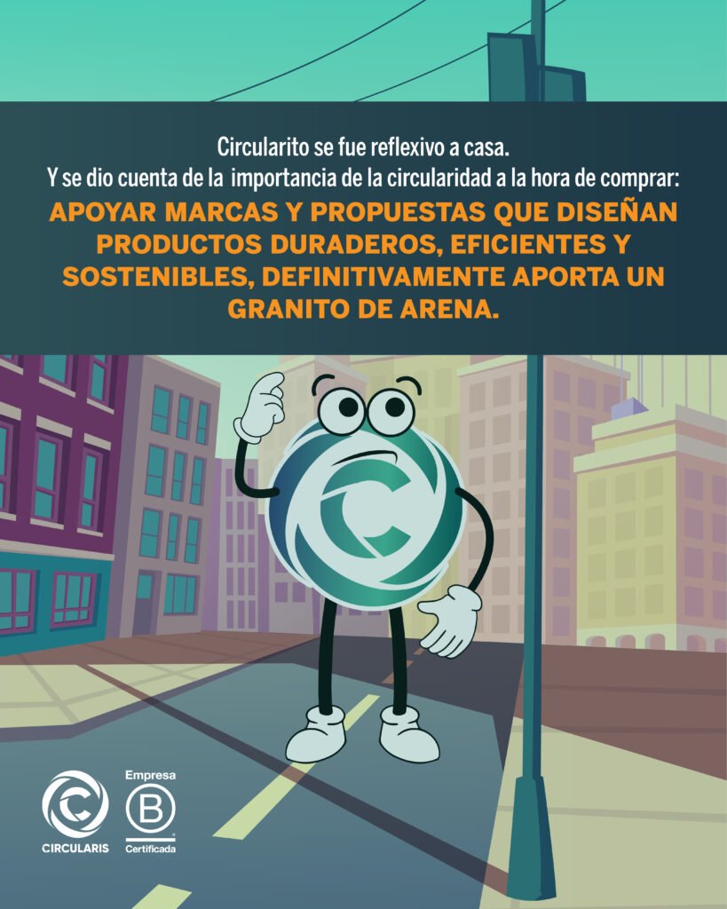 En Circularis trabajamos todos los días para demostrar que otra forma de producir y consumir es posible. Transformamos residuos en recursos, promovemos la reutilización y evitamos que toneladas de materiales terminen como basura. Frente a la obsolescencia, nuestra respuesta es clara: la circularidad. Como lo aprende el Circularito en su historia: detrás de cada producto descartado hay una oportunidad de diseñar mejor y aprovechar más los recursos.